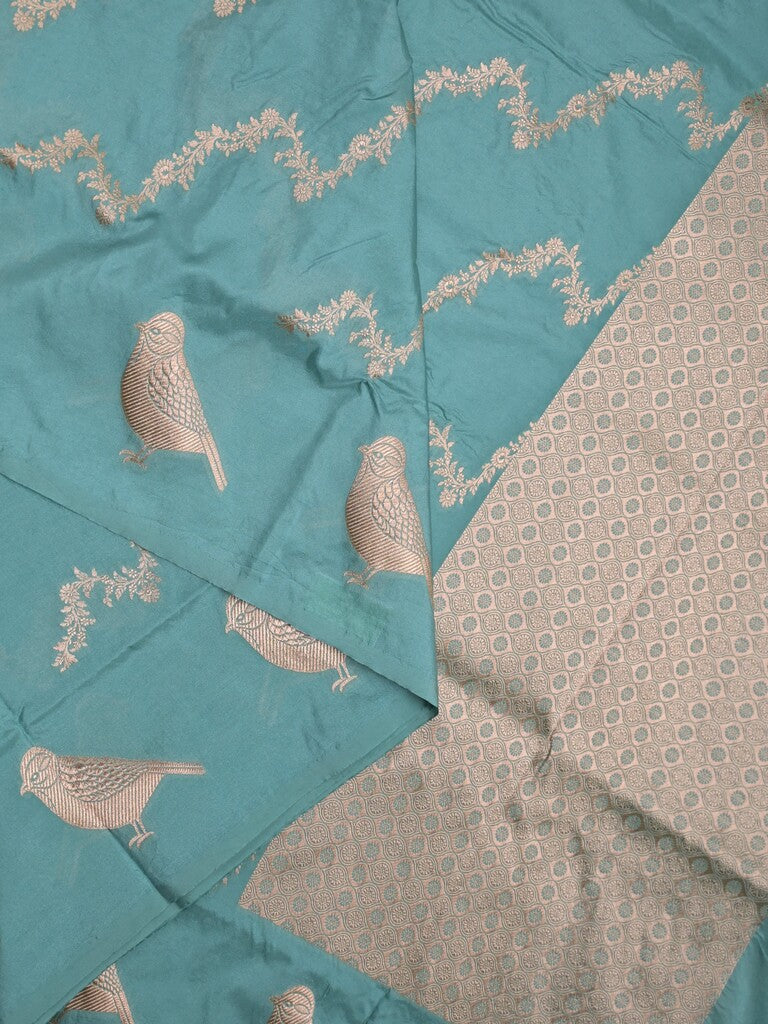 Banaras fancy saree sky blue color allover zari weaves & zari border with short pallu and plain blouse