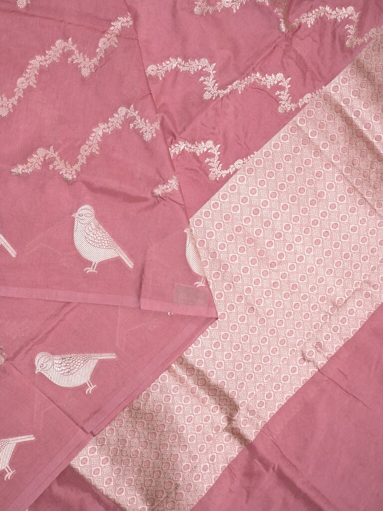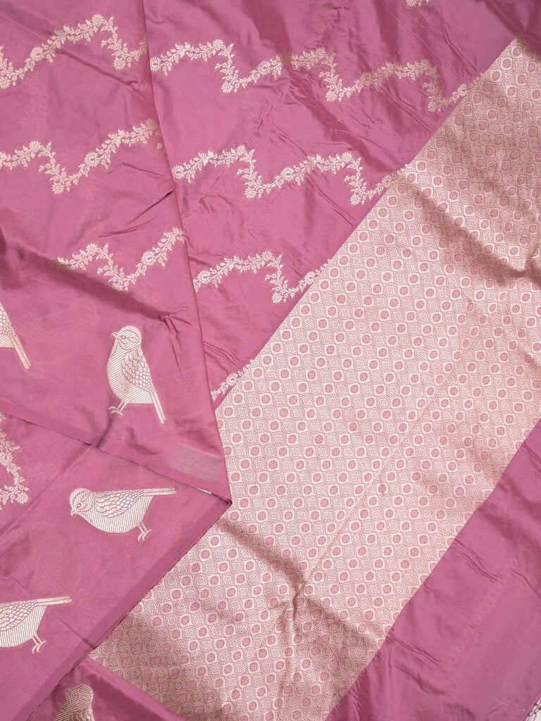 Banaras fancy saree onion pink color allover zari weaves & zari border with short pallu and plain blouse