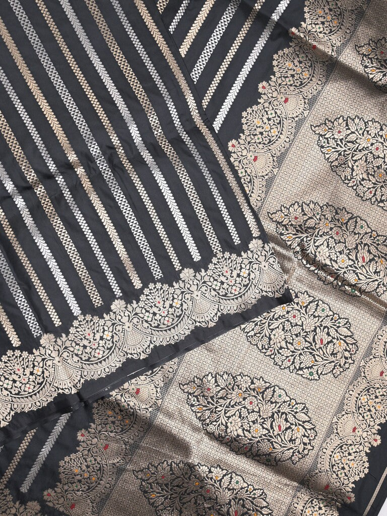 Banaras fancy saree black color allover zari weaves & zari border with rich pallu and plain blouse