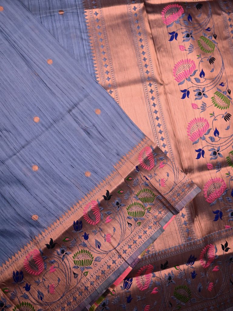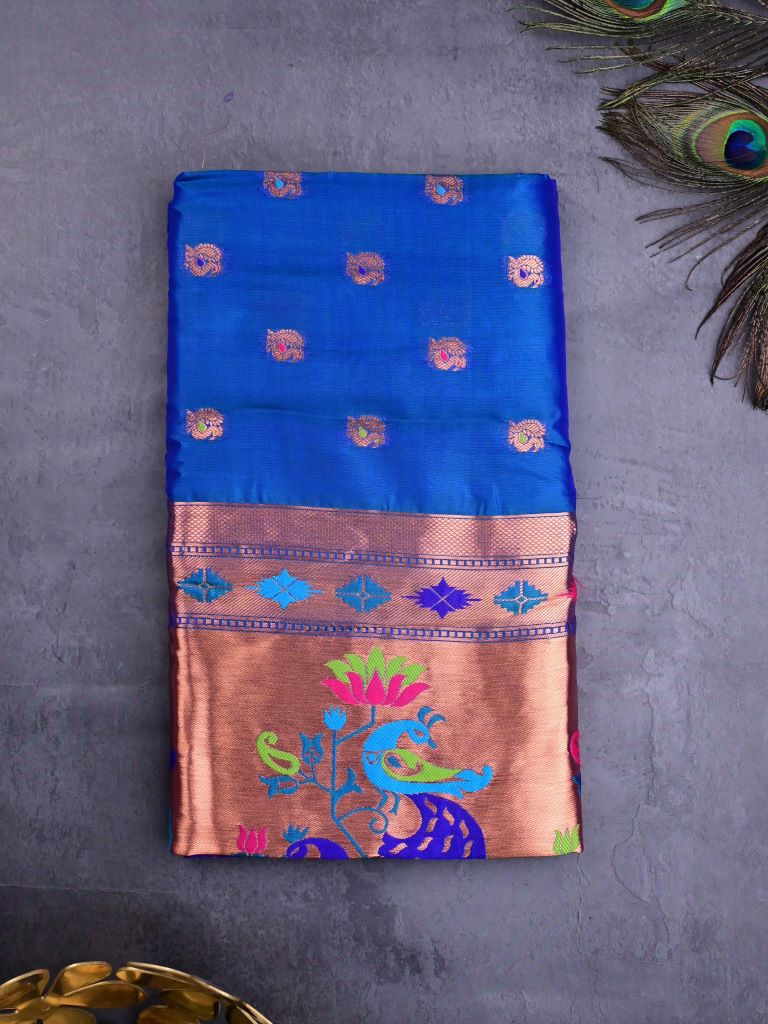 Banaras fancy saree sky blue color allover zari motifs & paithani border with paithani pallu and attached blouse