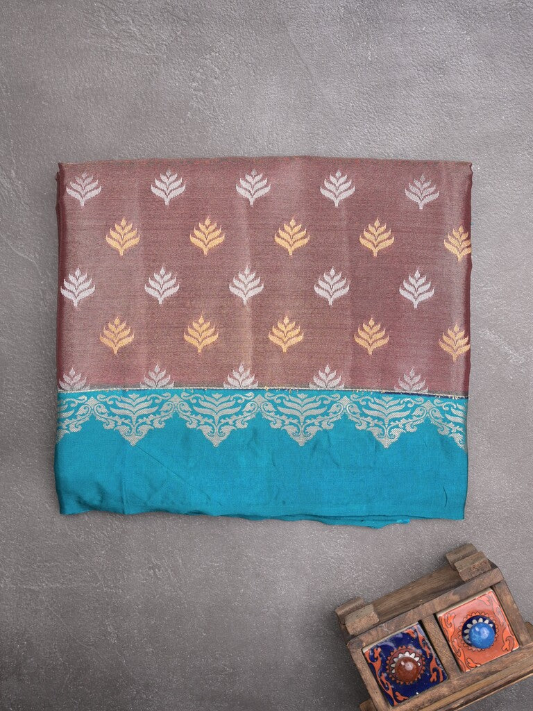 Dupion tissue fancy saree brown color allover zari motifs & zari border with brocade pallu and brocade blouse