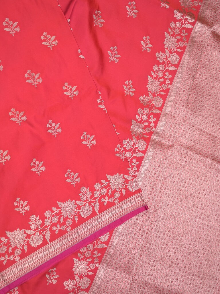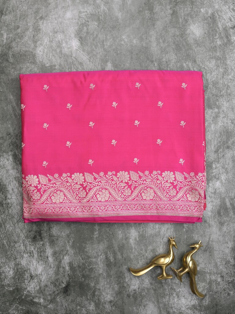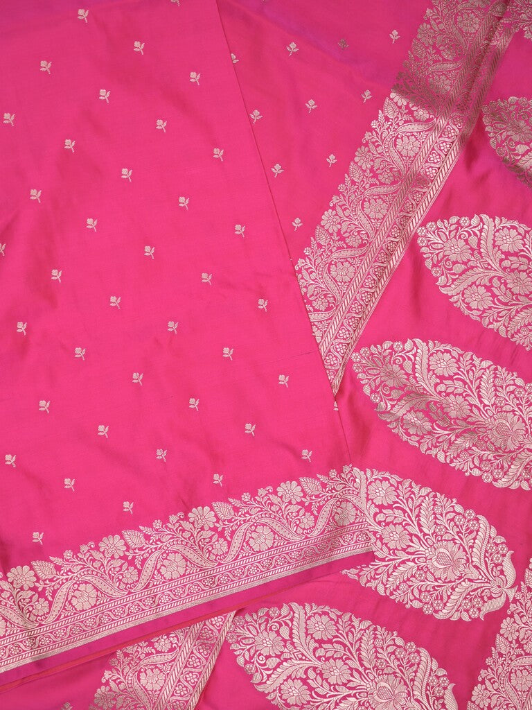 Banaras fancy saree pink color allover zari motifs & zari border with rich pallu and self blouse