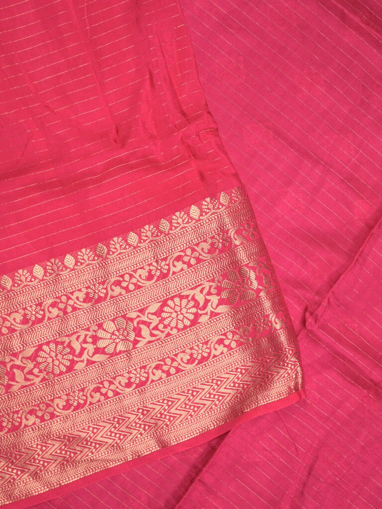 Dupion fancy saree pink color allover stripes & zari border with zari pallu and brocade blouse