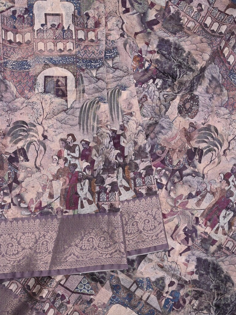 Chanderi fancy saree grey color allover prints & zari border with rich pallu and printed blouse