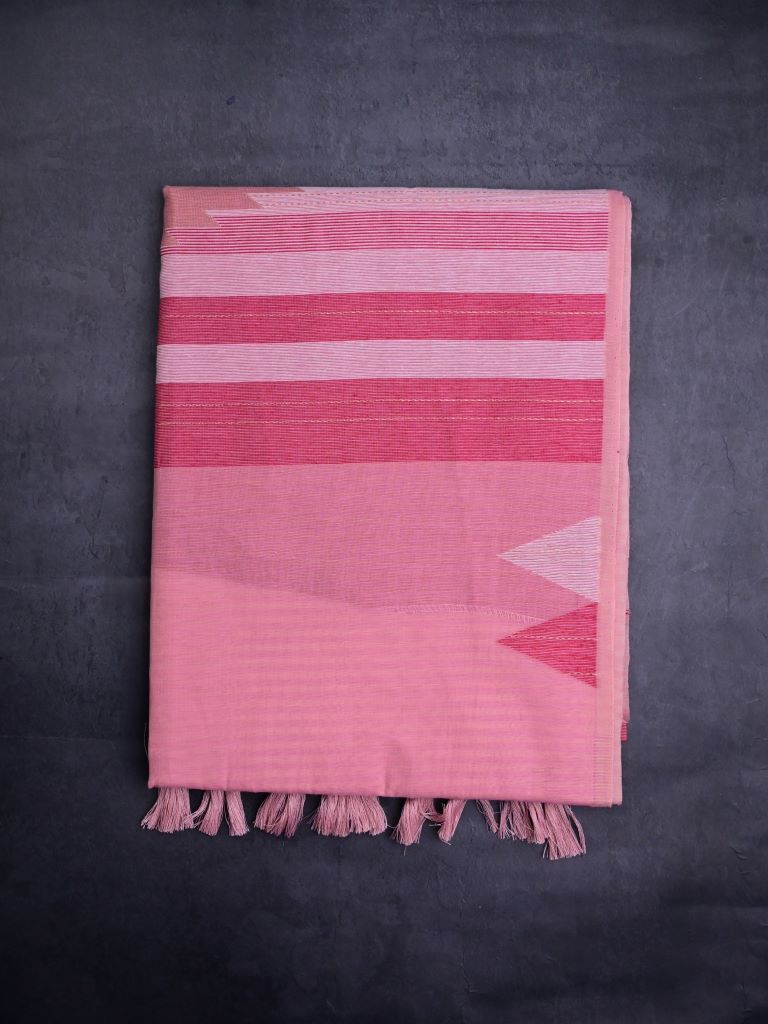 Chanderi fancy saree baby pink color allover plain & temple border with weaving pallu and plain blouse