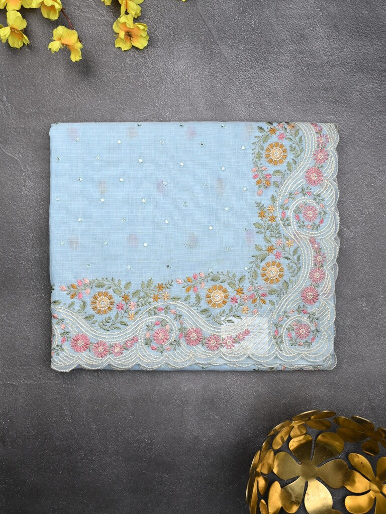 Kota fancy saree pastel blue color allover embroidery motifs & zari border with short pallu and plain blouse