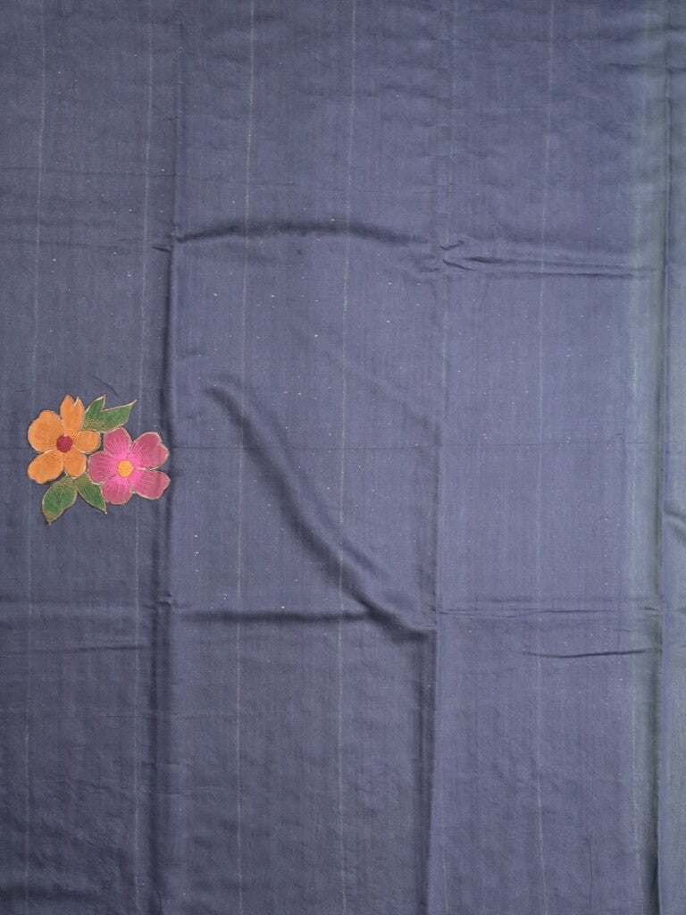 Bhagalpur fancy saree grey color allover stripes, floral weaves with contrast pallu and attached contrast blouse