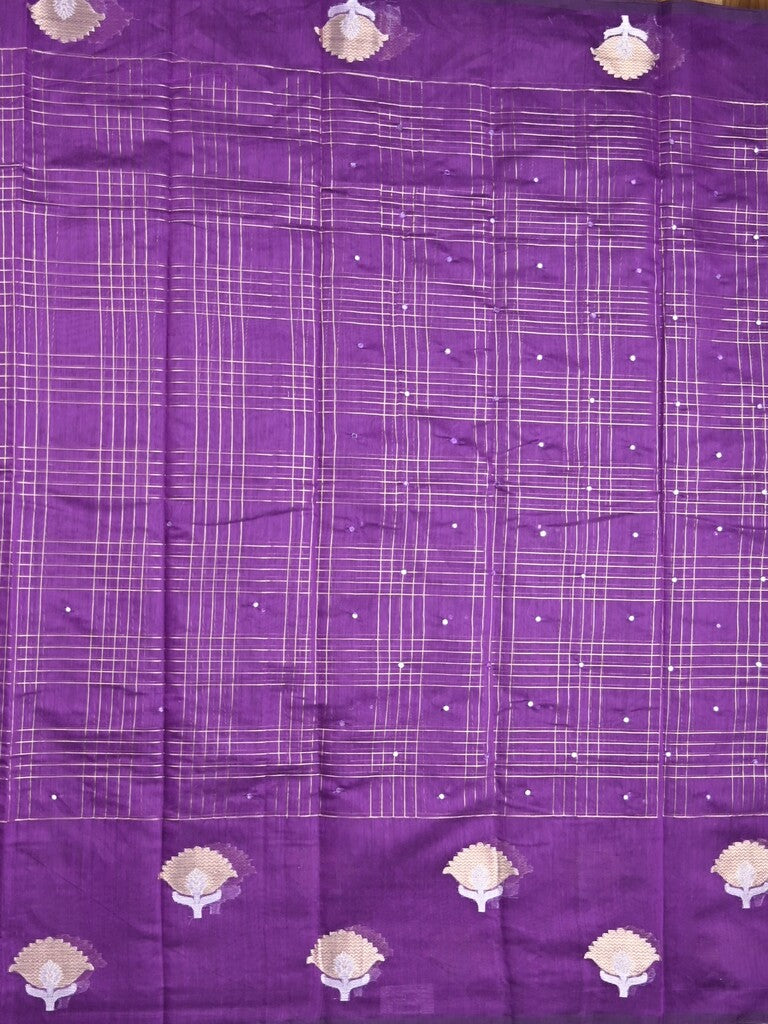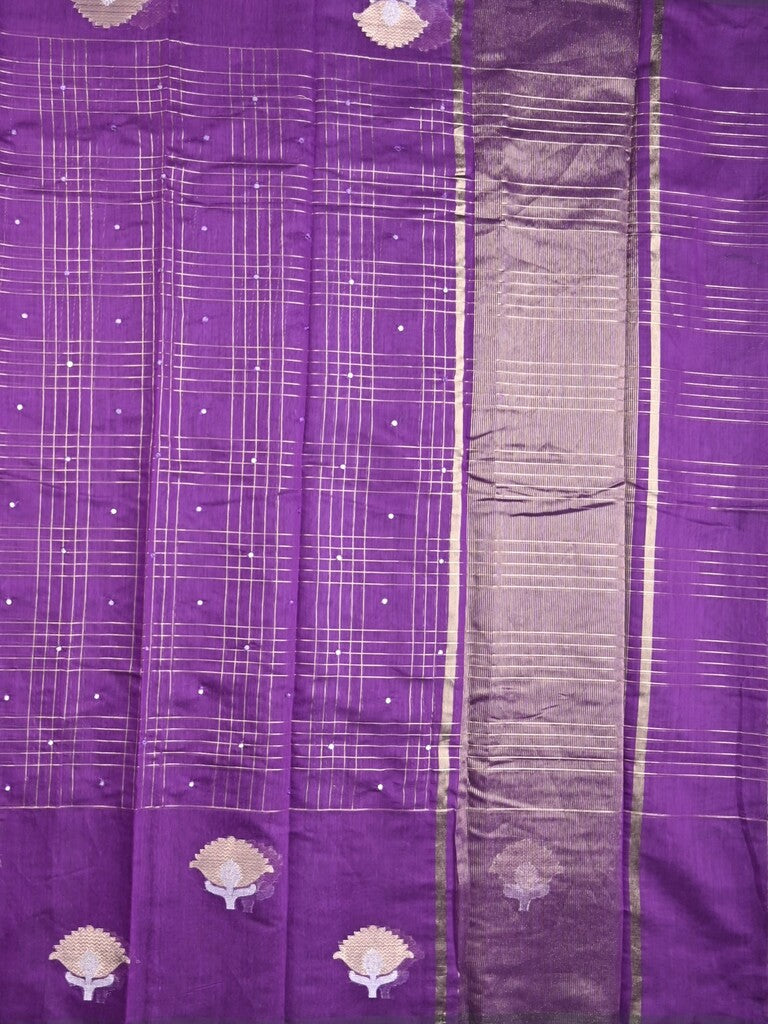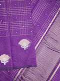 Chanderi fancy saree purple color allover checks, zari motifs & zari border with zari pallu and self blouse
