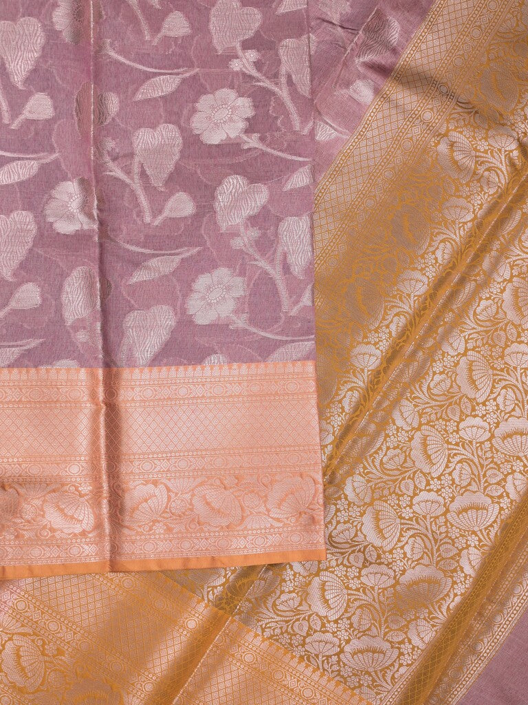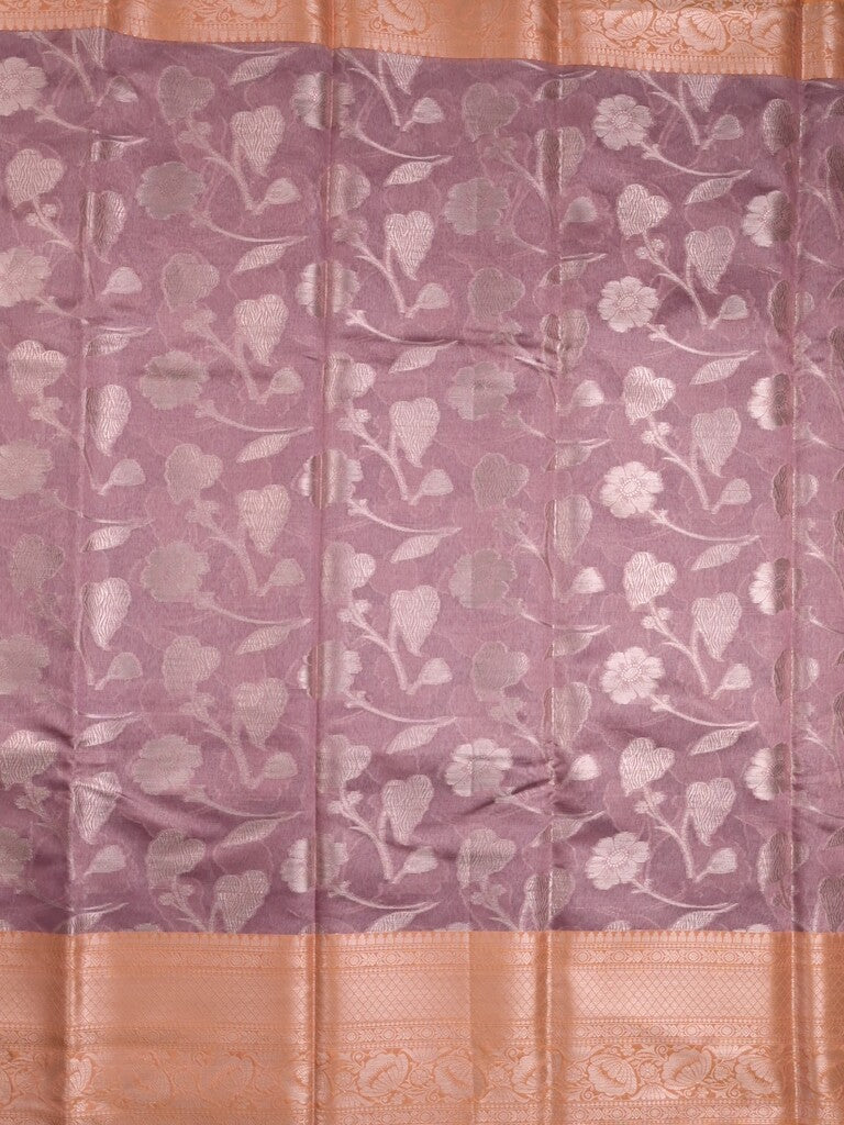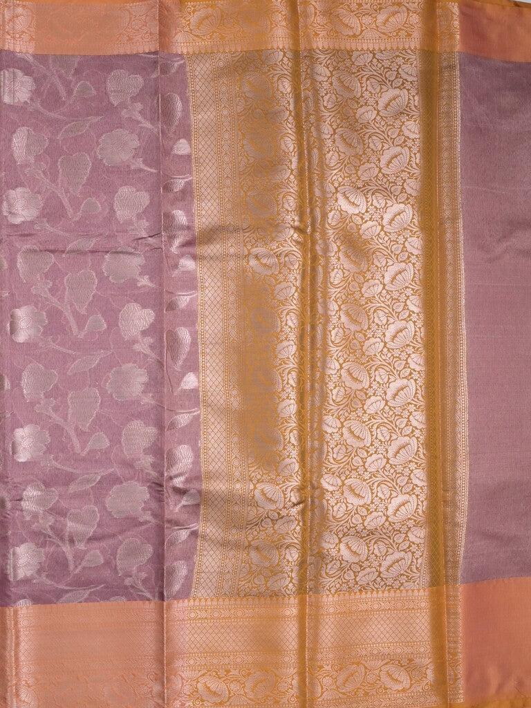 Chanderi fancy saree light purple color allover zari motifs & zari border with short pallu and contrast blouse