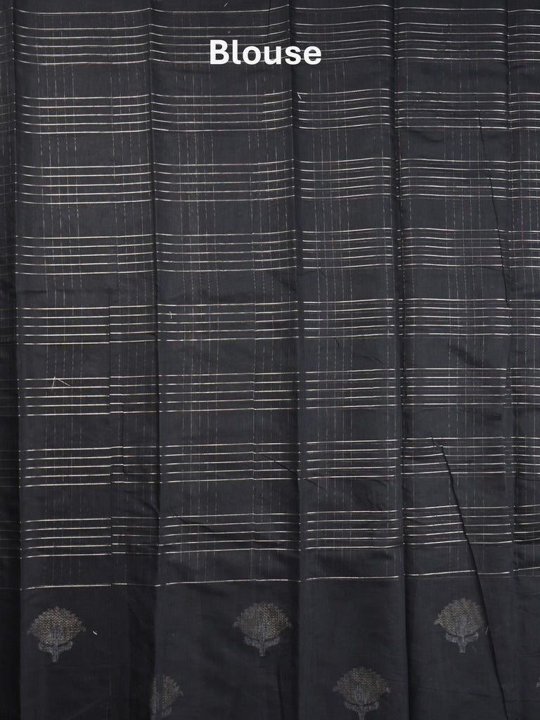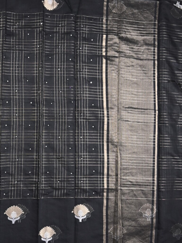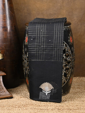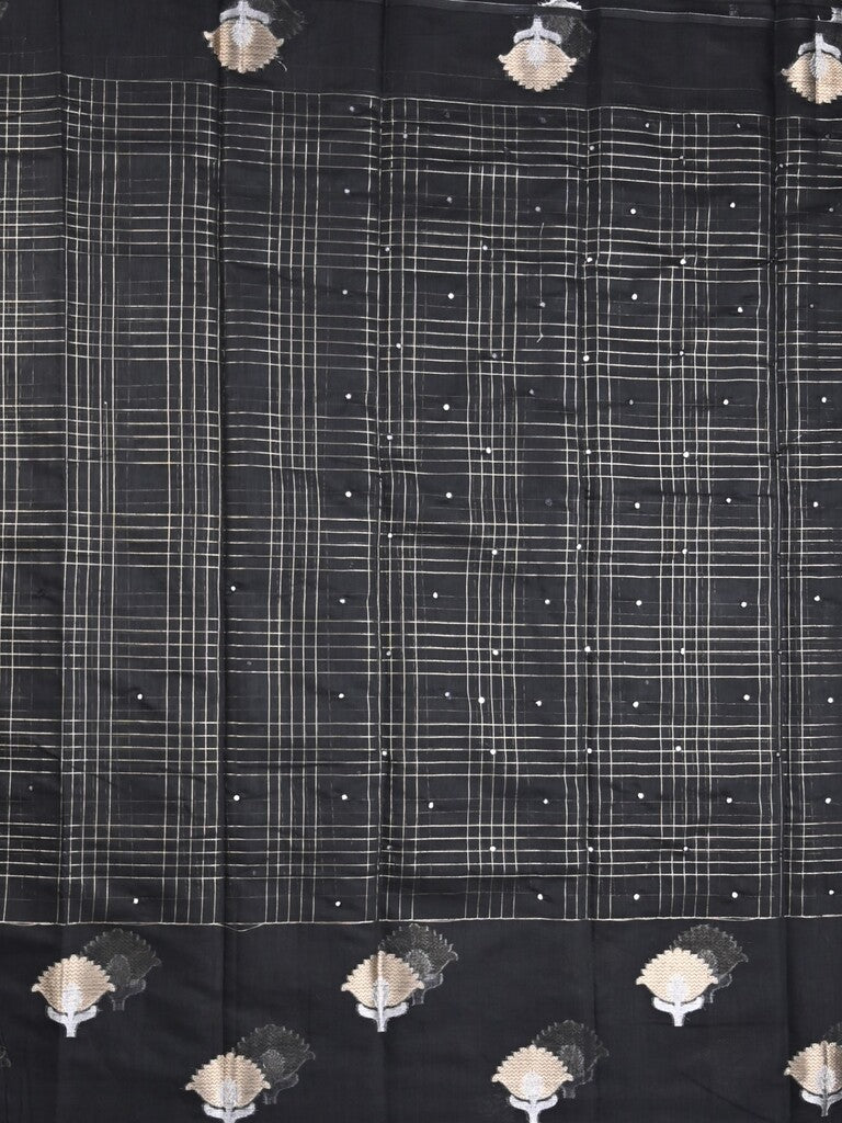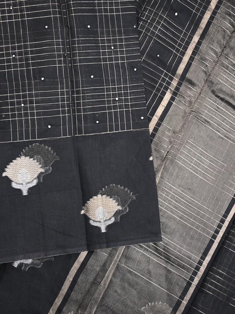 Chanderi fancy saree black color allover checks, zari motifs & zari border with zari pallu and self blouse