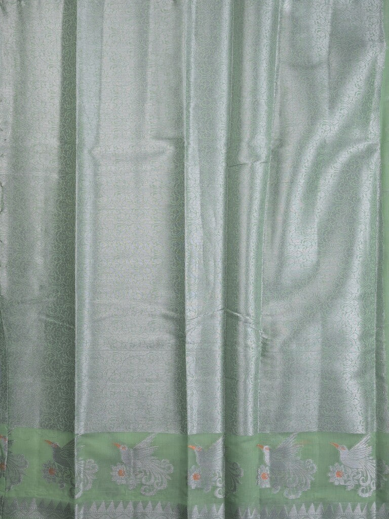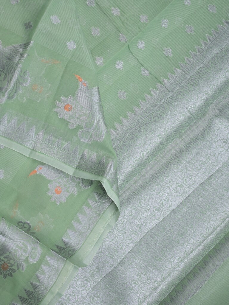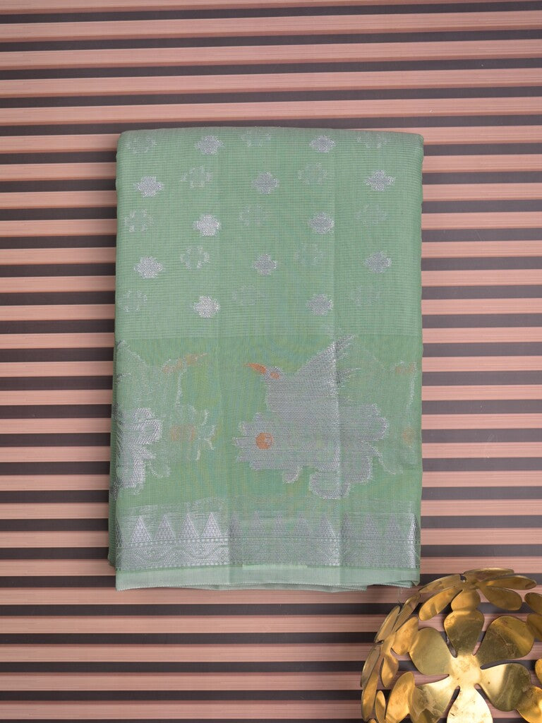 Chanderi fancy saree light green color allover zari weaves & weaving border with brocade pallu and brocade blouse