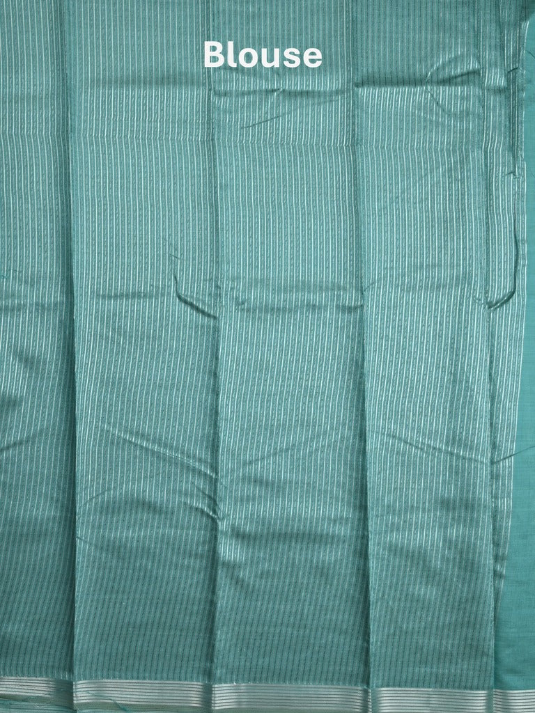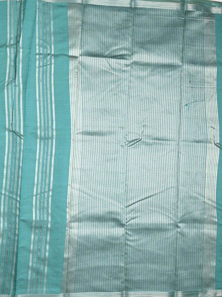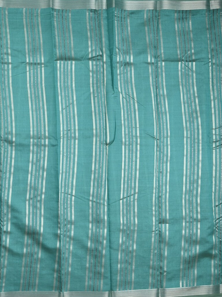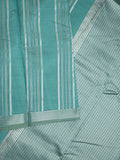 Dupion fancy saree sky blue color allover stripes & zari border with zari pallu and brocade blouse