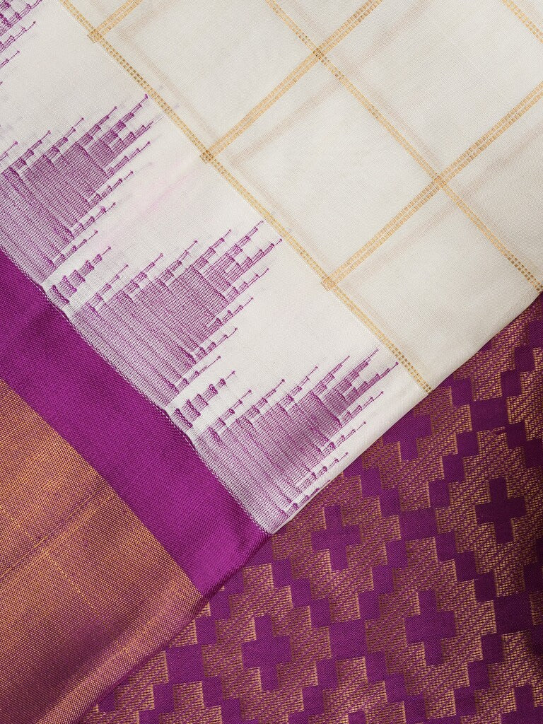 Gadwal pattu saree white color allover zari weaves & kanchi border with rich pallu and contrast plain blouse