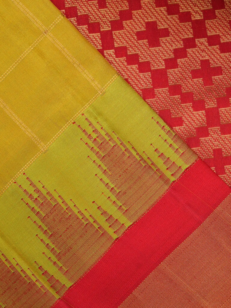Gadwal pattu saree golden yellow color allover zari weaves & kanchi border with rich pallu and contrast plain blouse