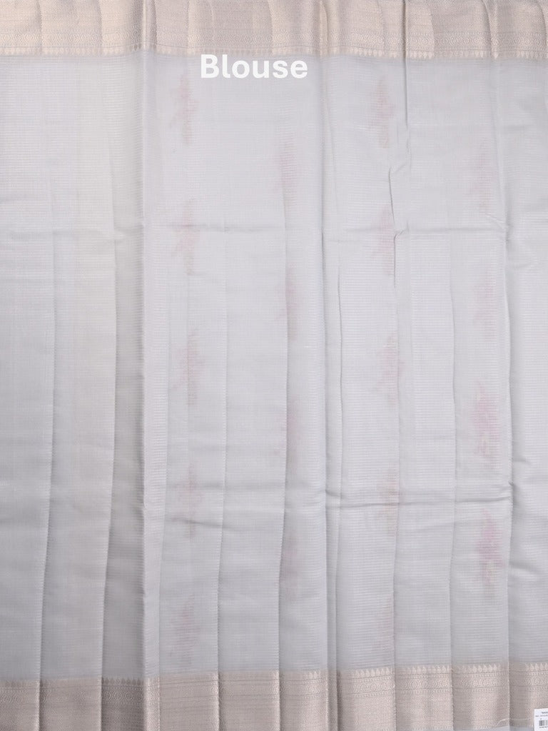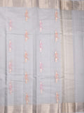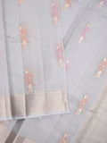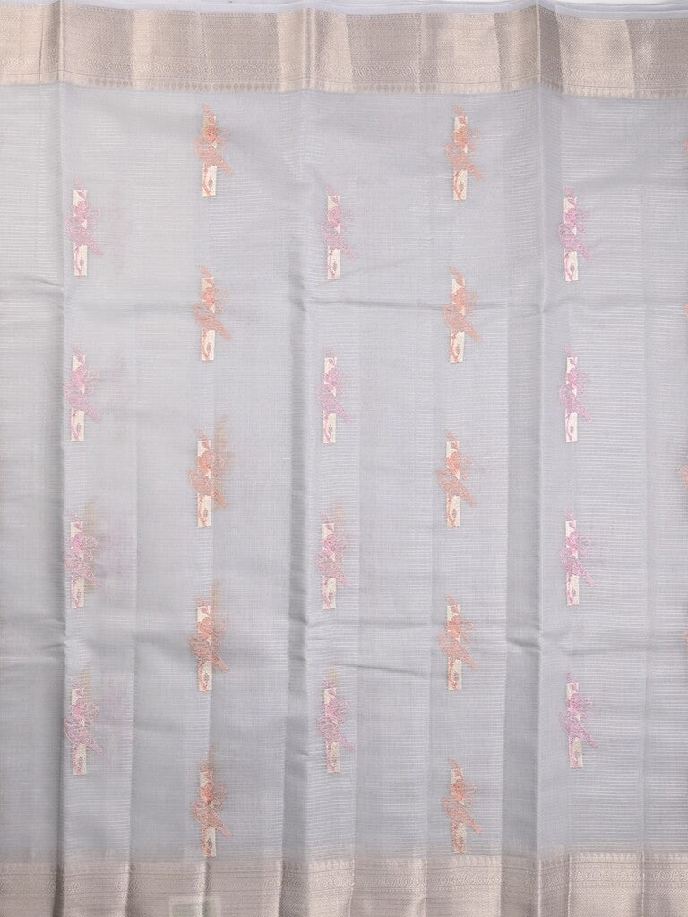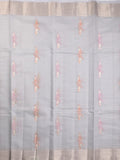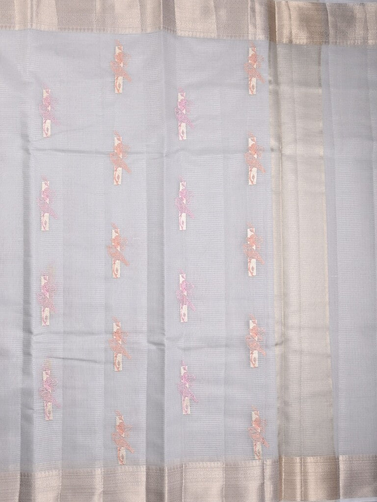 Kota fancy saree bluish grey color allover embroidery motifs & zari border with short pallu and plain blouse