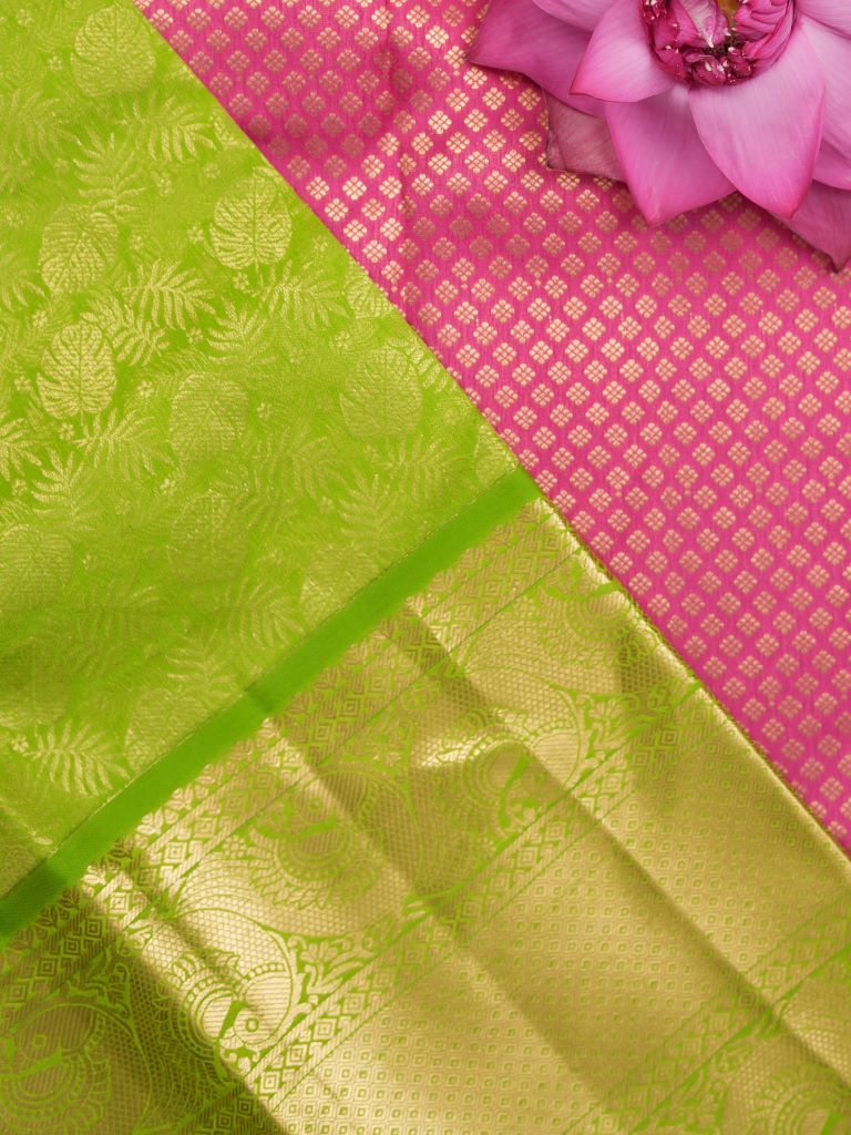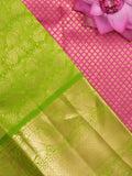 Kanchi pattu saree parrot green color allover zari weaves & kanchi border with rich pallu and contrast blouse