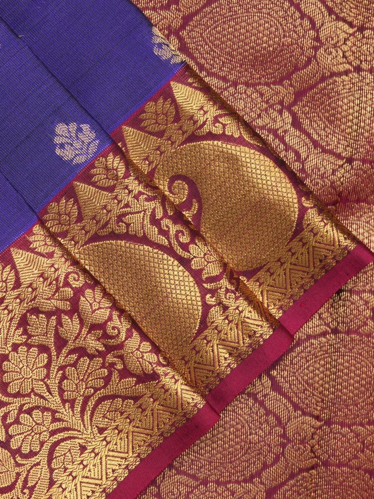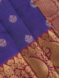 Kanchi pattu saree royal blue color allover zari motifs & zari border with rich pallu and contrast plain blouse