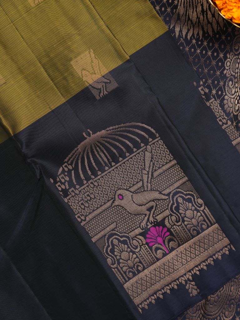 Kanchi pattu saree snuff color allover zari motifs & zari border with rich pallu and contrast plain blouse