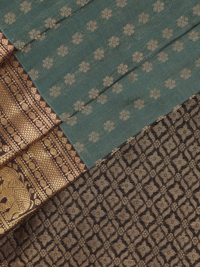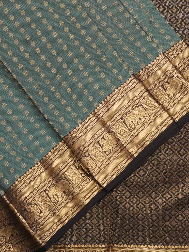 Kanchi pattu saree bluish grey color allover zari motifs & zari border with rich pallu and contrast plain blouse