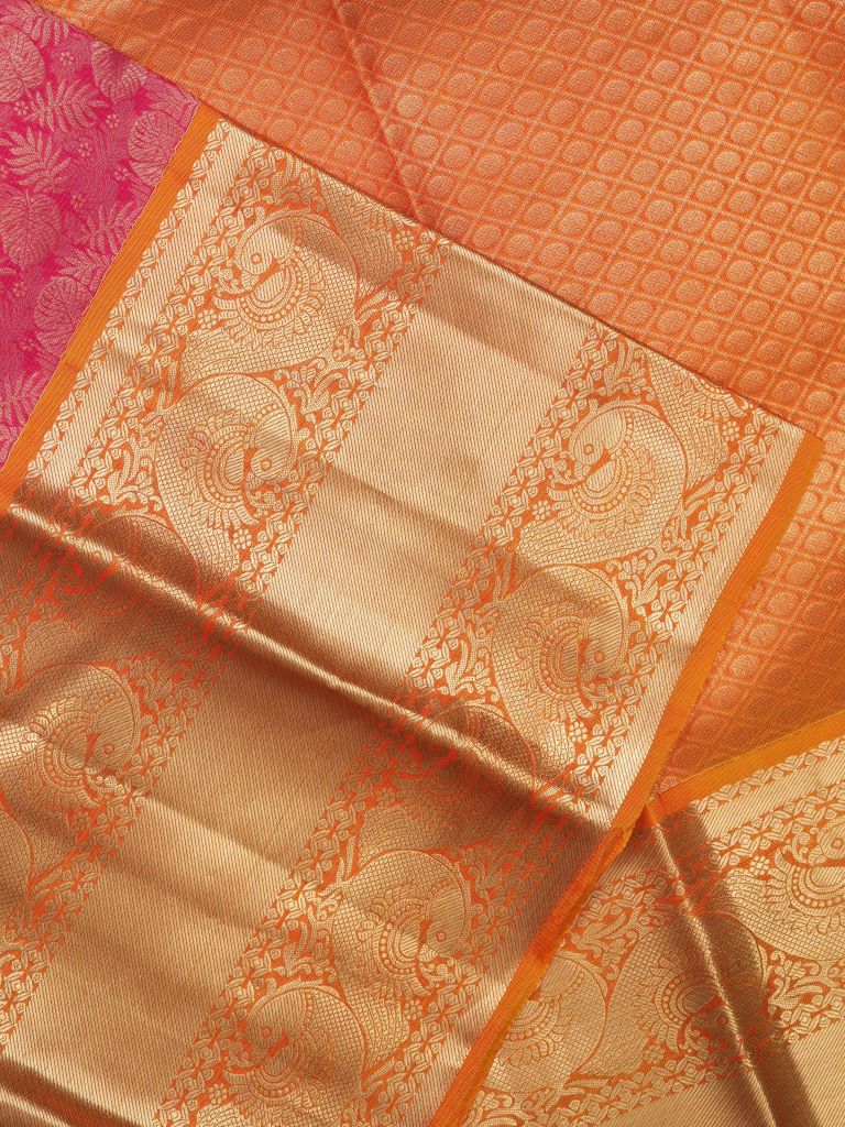 Kanchi pattu saree pink color allover zari weaves & kanchi border with rich pallu and contrast blouse