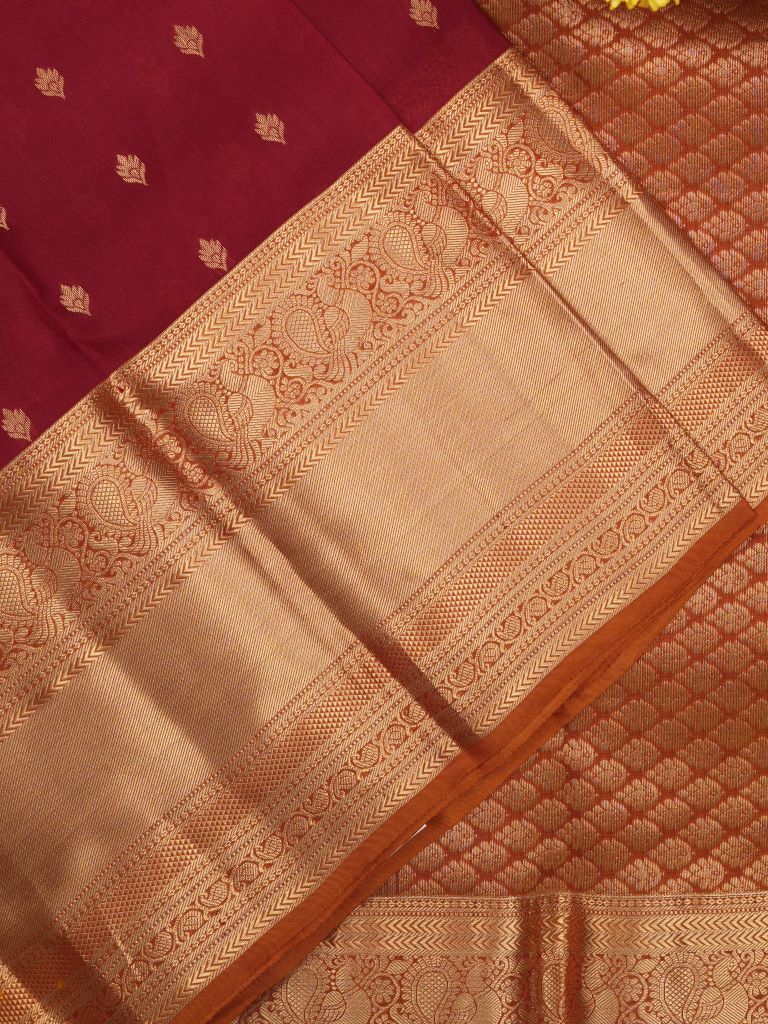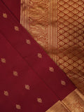 Kanchi pattu saree maroon color allover zari motifs & kanchi border with rich pallu and contrast plain blouse