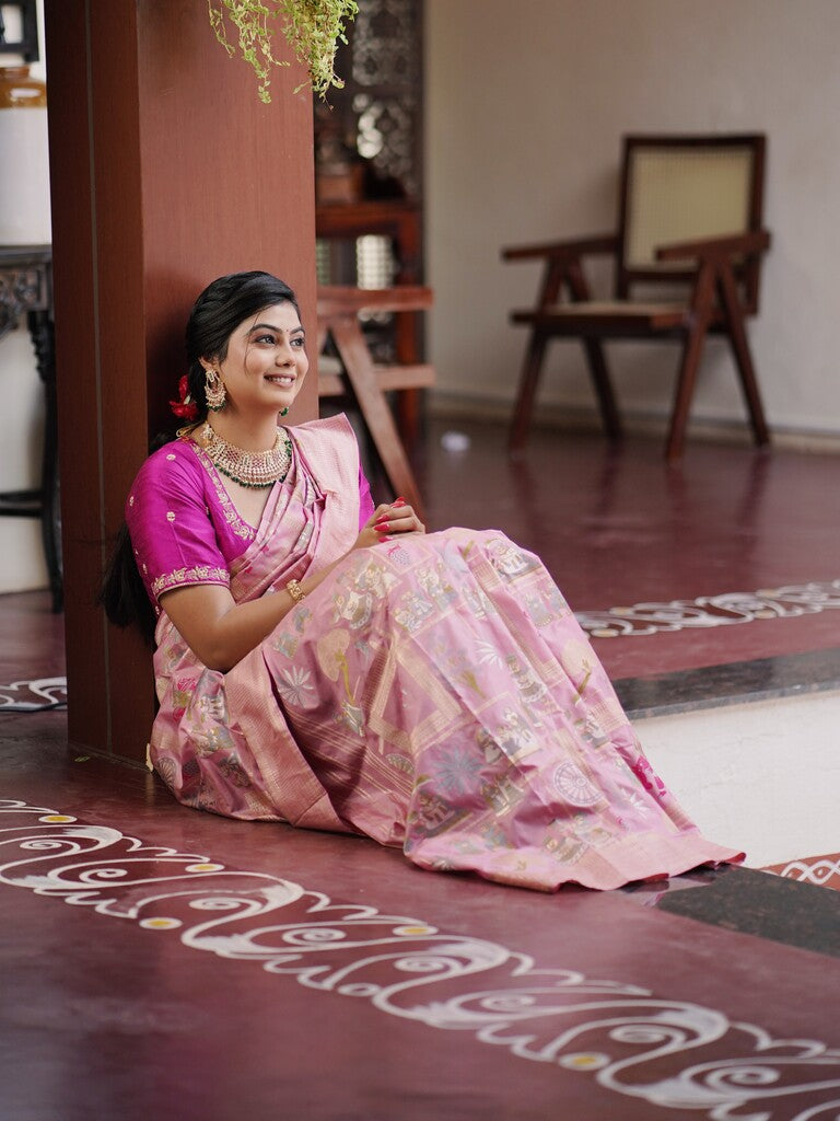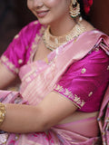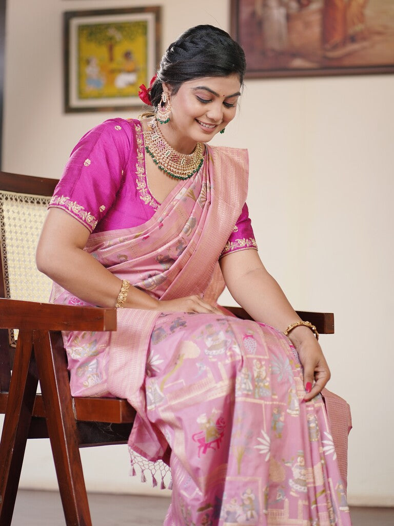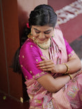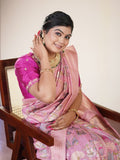 Banaras pattu saree purple color allover zari weaves & zari border with rich pallu and attached blouse