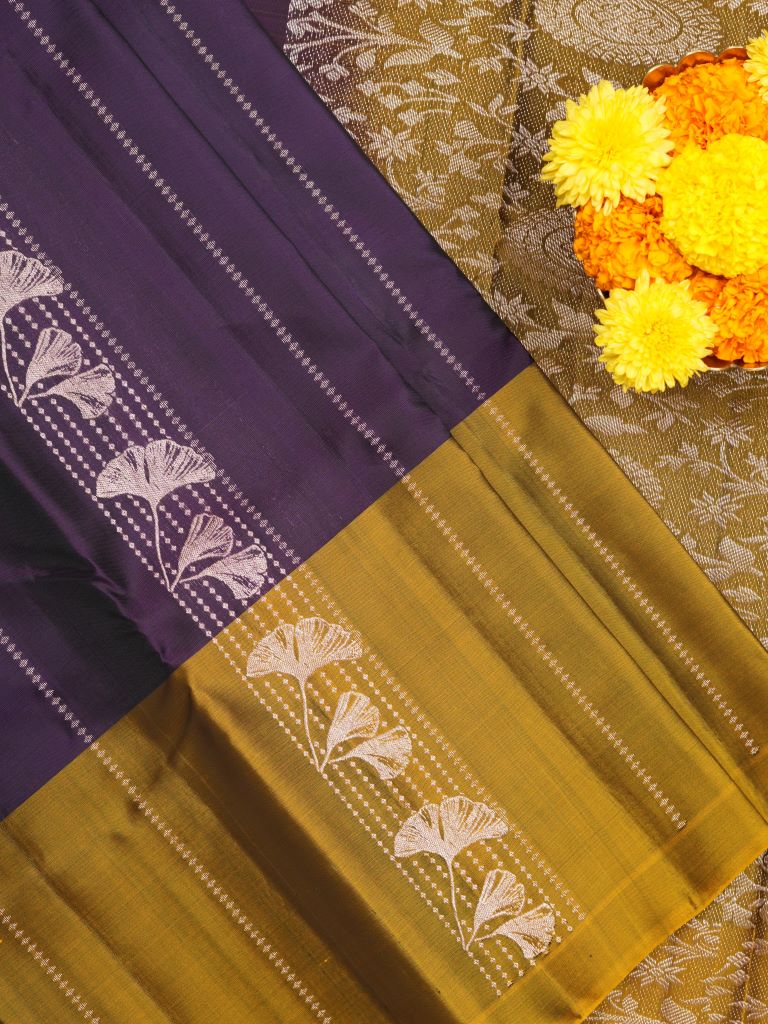 Kanchi pattu saree violet color allover zari motifs & zari border with rich pallu and contrast plain blouse