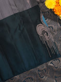 Kanchi pattu saree grey color allover zari motifs & zari border with rich pallu and contrast plain blouse