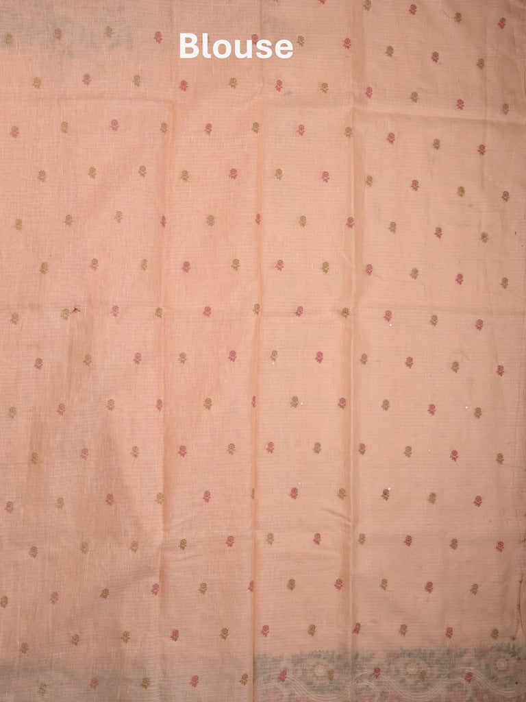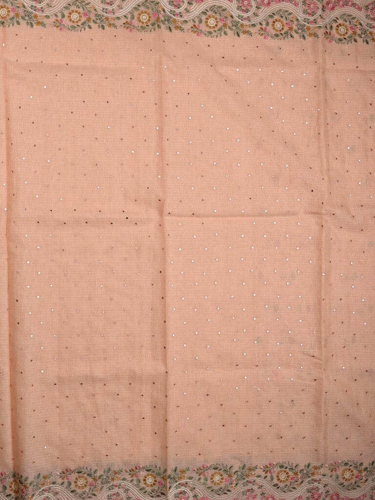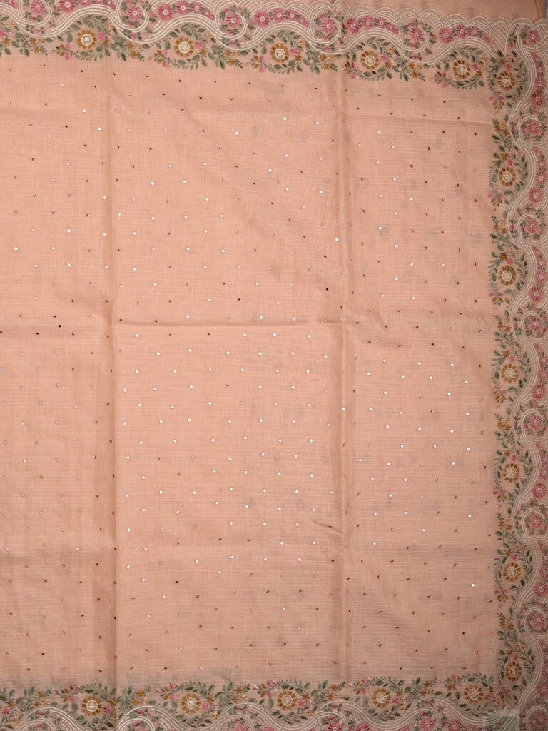 Chanderi fancy saree peach color allover mirror work & embroidery cutwork border with running pallu and attached blouse