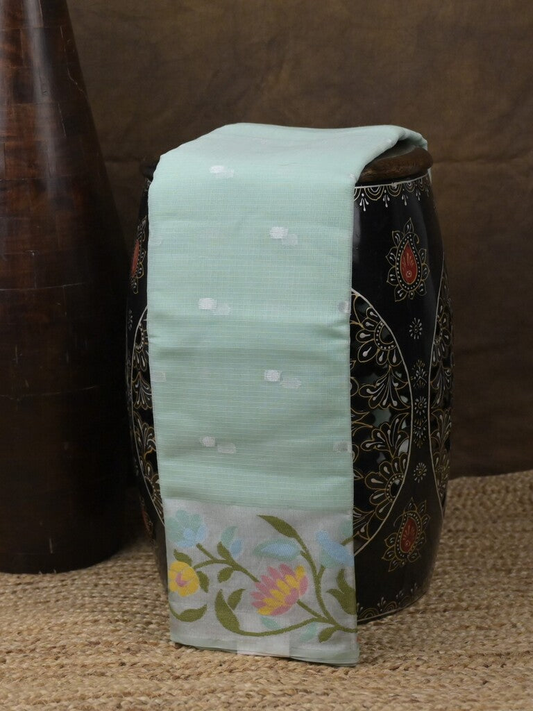 Kota fancy saree light blue color allover zari motifs & zari border with self pallu and running blouse