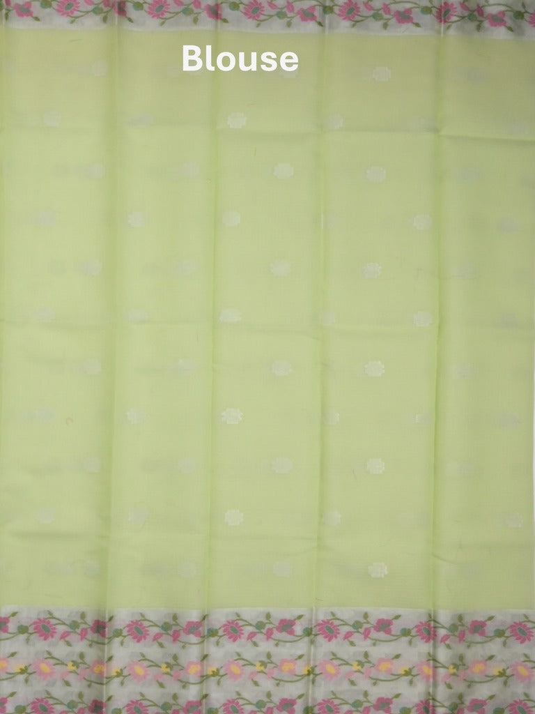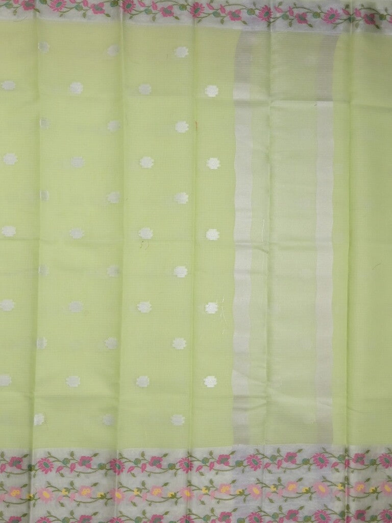 Kota fancy saree light green color allover zari motifs & zari border with self pallu and running blouse