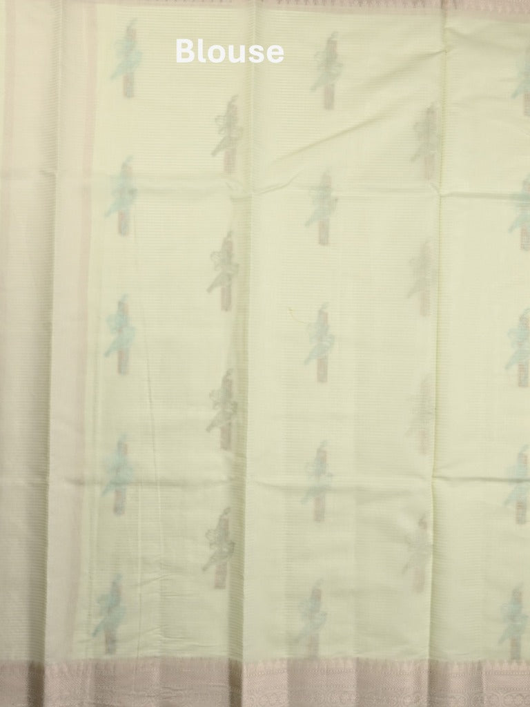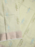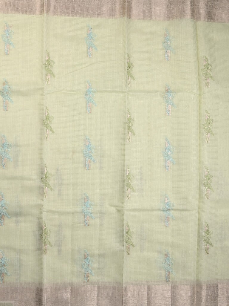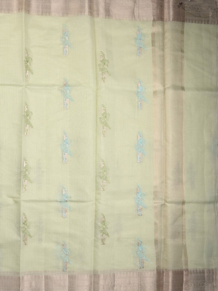 Kota fancy saree light pastel green color allover embroidery motifs & zari border with short pallu and plain blouse
