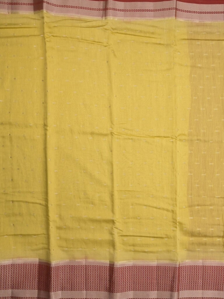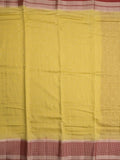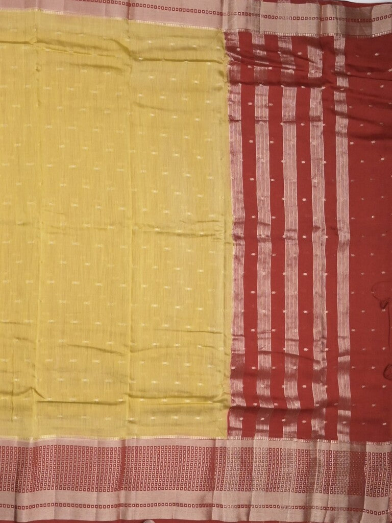 Maheshwari fancy saree light yellow color allover zari motifs & zari border with contrast pallu and attached blouse