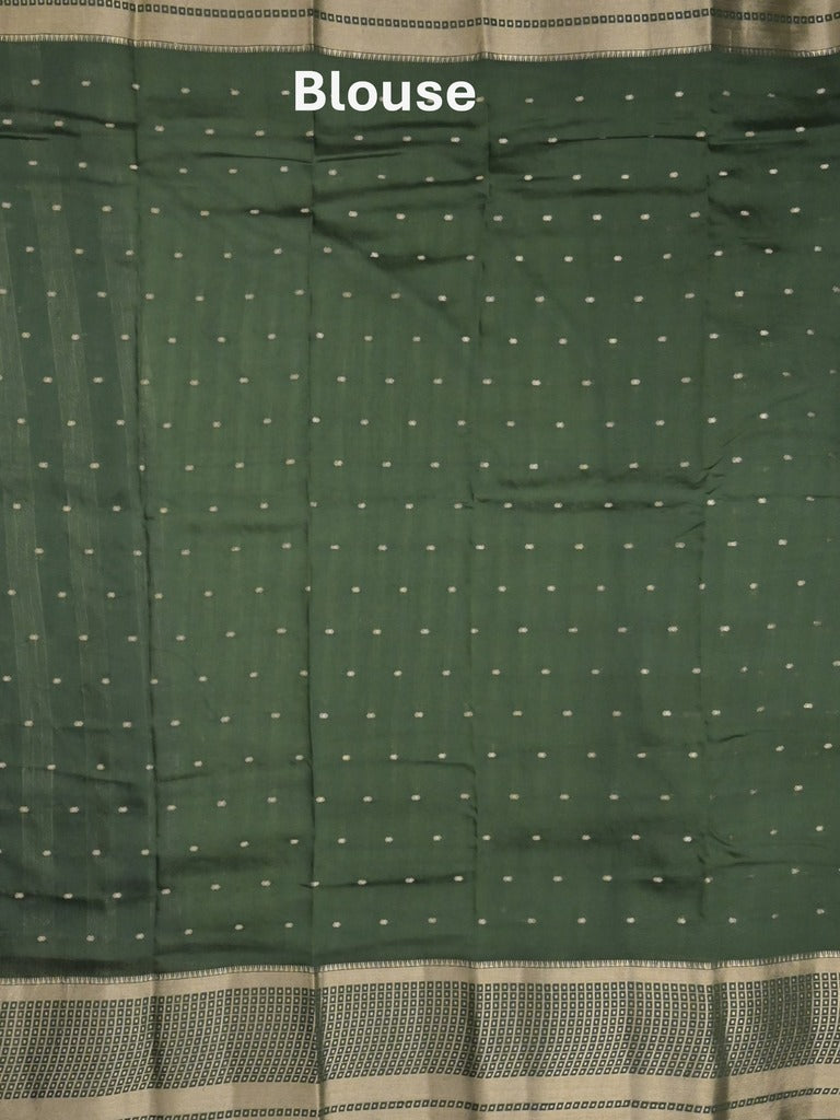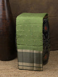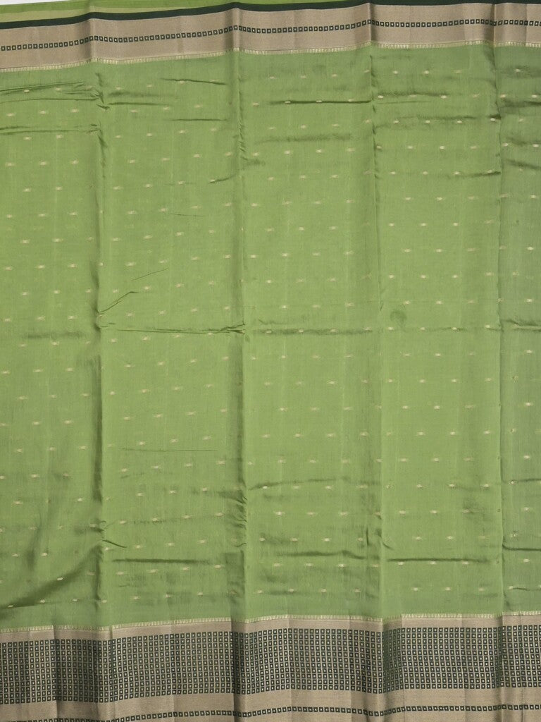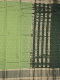 Maheshwari fancy saree pista green color allover zari motifs & zari border with contrast pallu and attached blouse