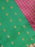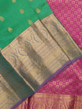 Kanchi pattu saree peacock green color allover zari motifs & kanchi border with rich pallu and contrast plain blouse
