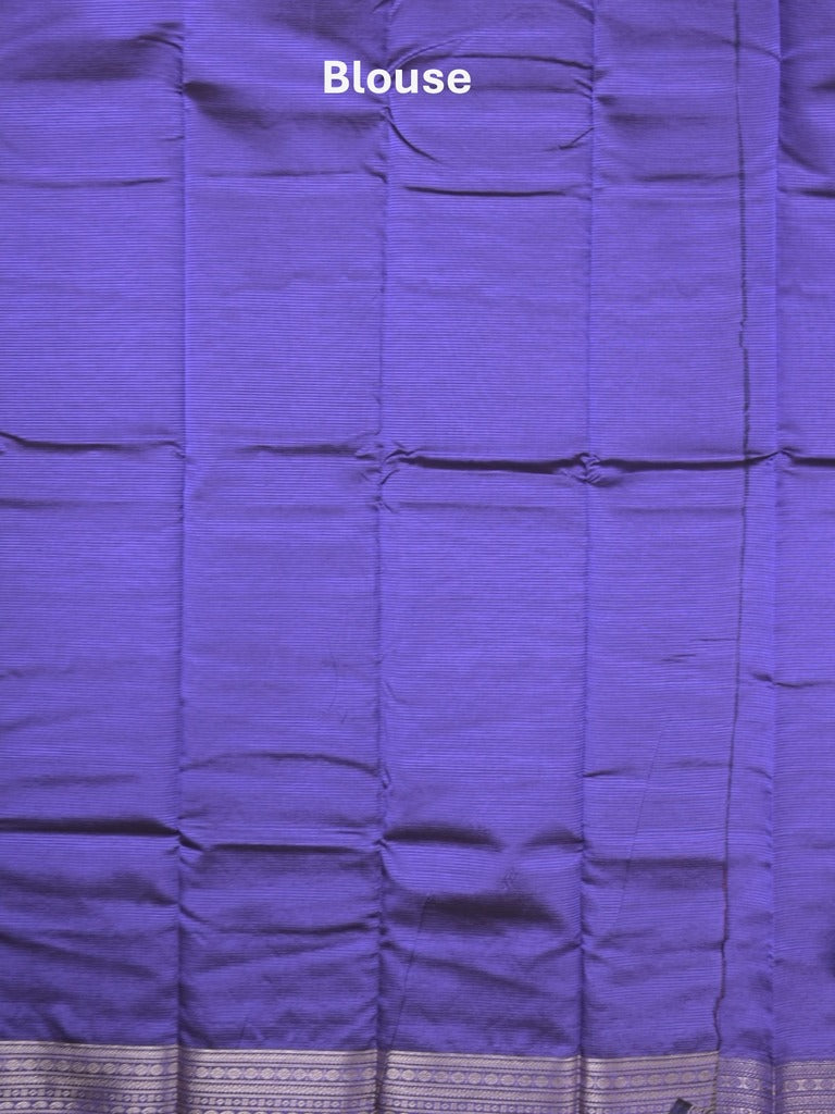 Mangalagiri fancy saree blue color allover zari motifs & zari border with rich pallu and plain blouse
