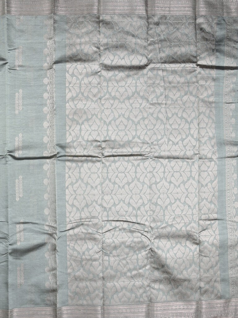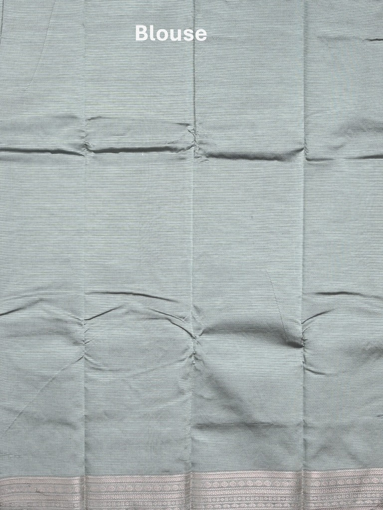 Mangalagiri fancy saree light grey color allover zari motifs & zari border with rich pallu and plain blouse