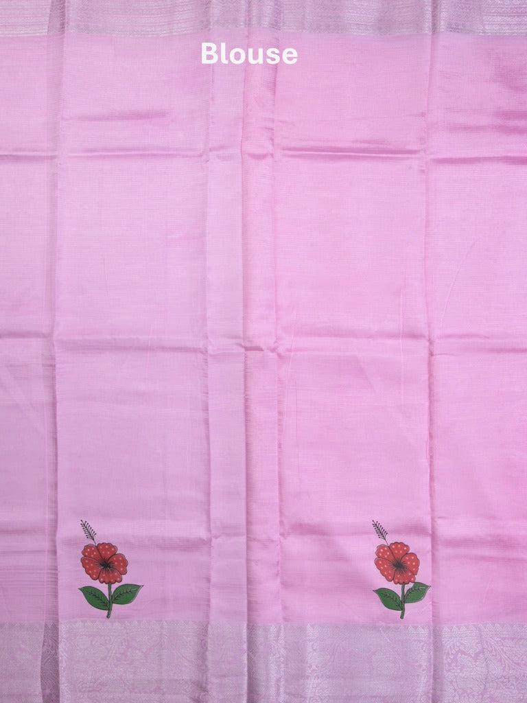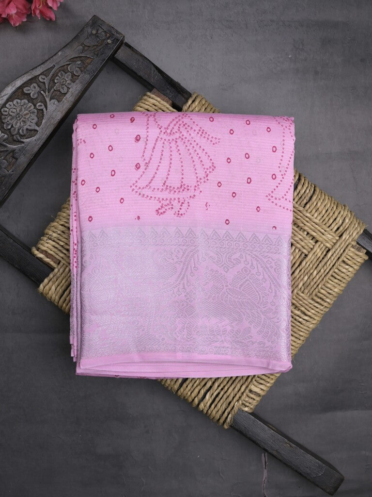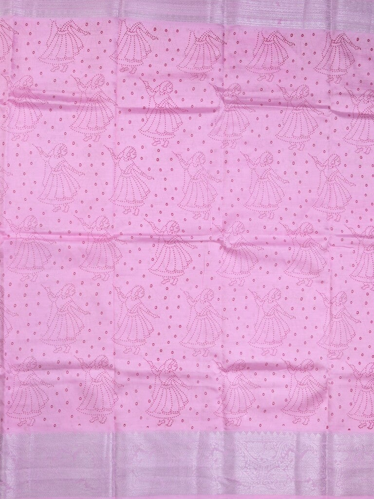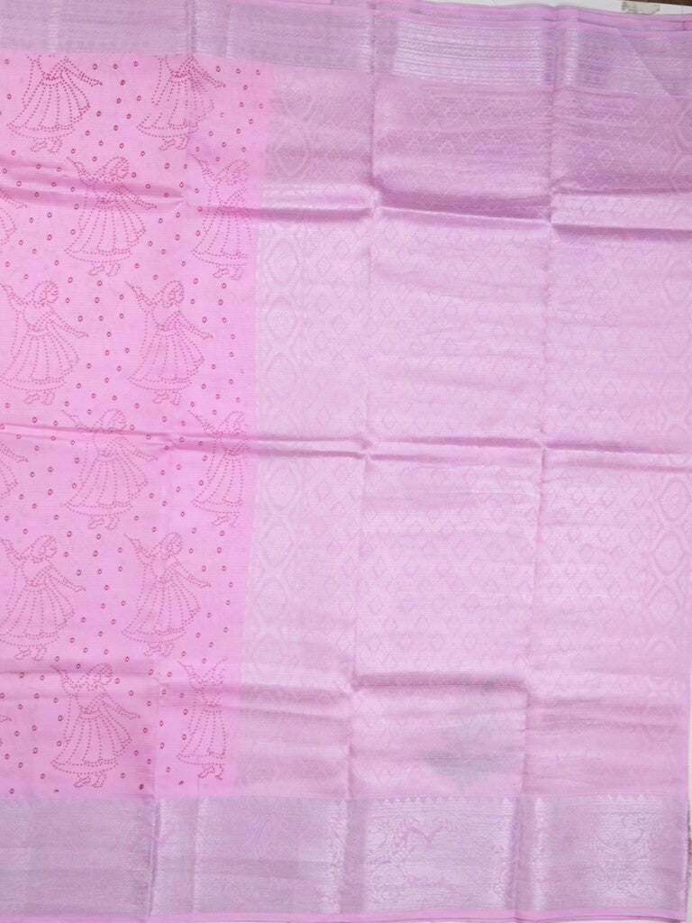 Mangalagiri fancy saree light pink color allover prints & zari border with rich pallu and plain blouse