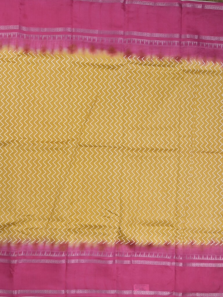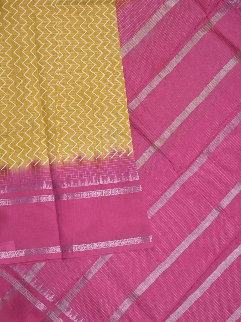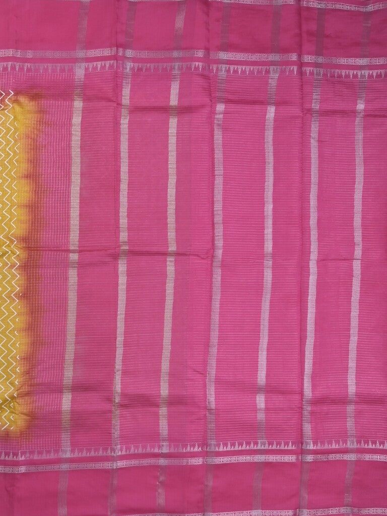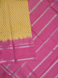 Mangalagiri fancy saree light yellow color allover stripes & zari border with striped pallu and printed blouse