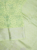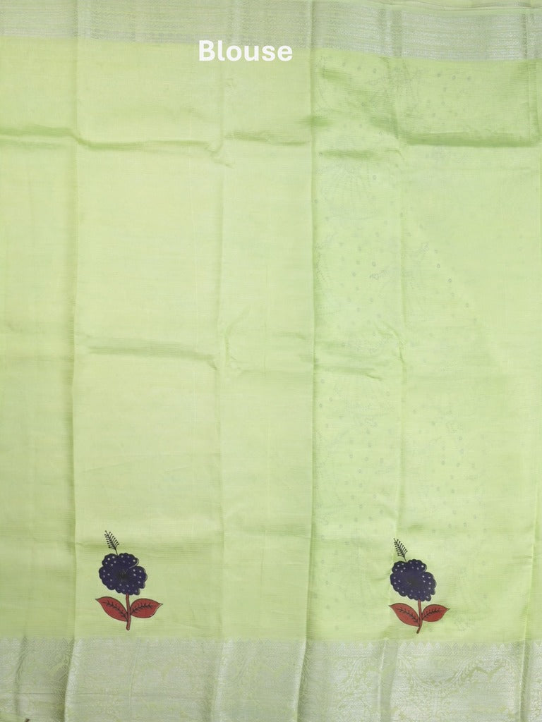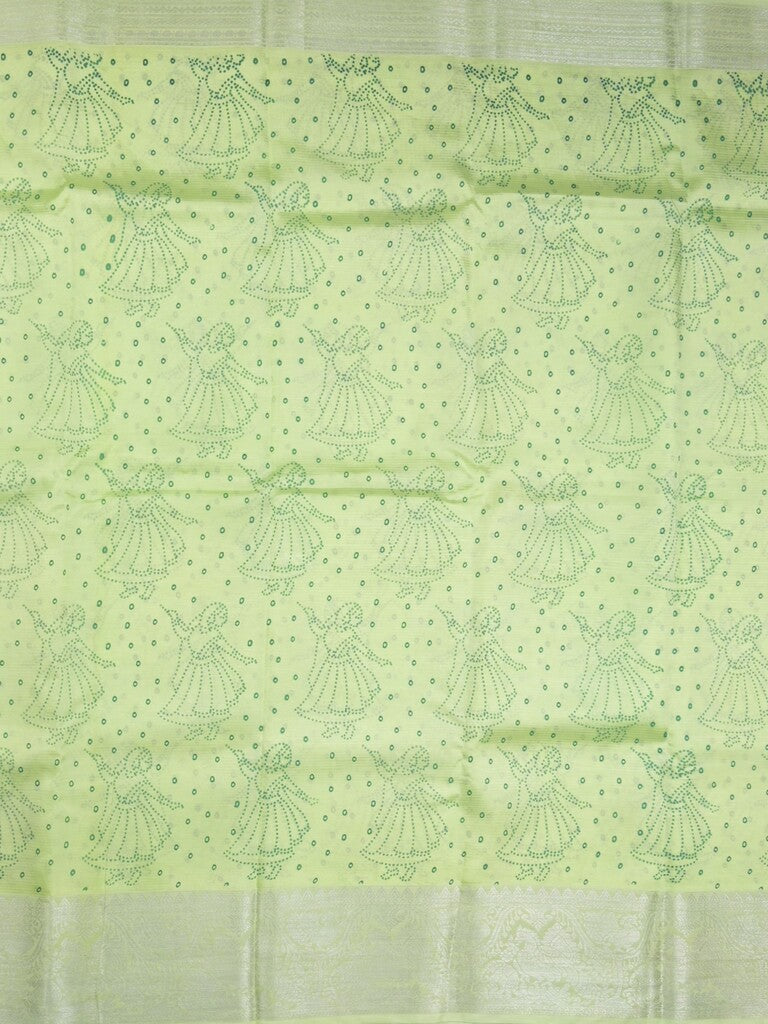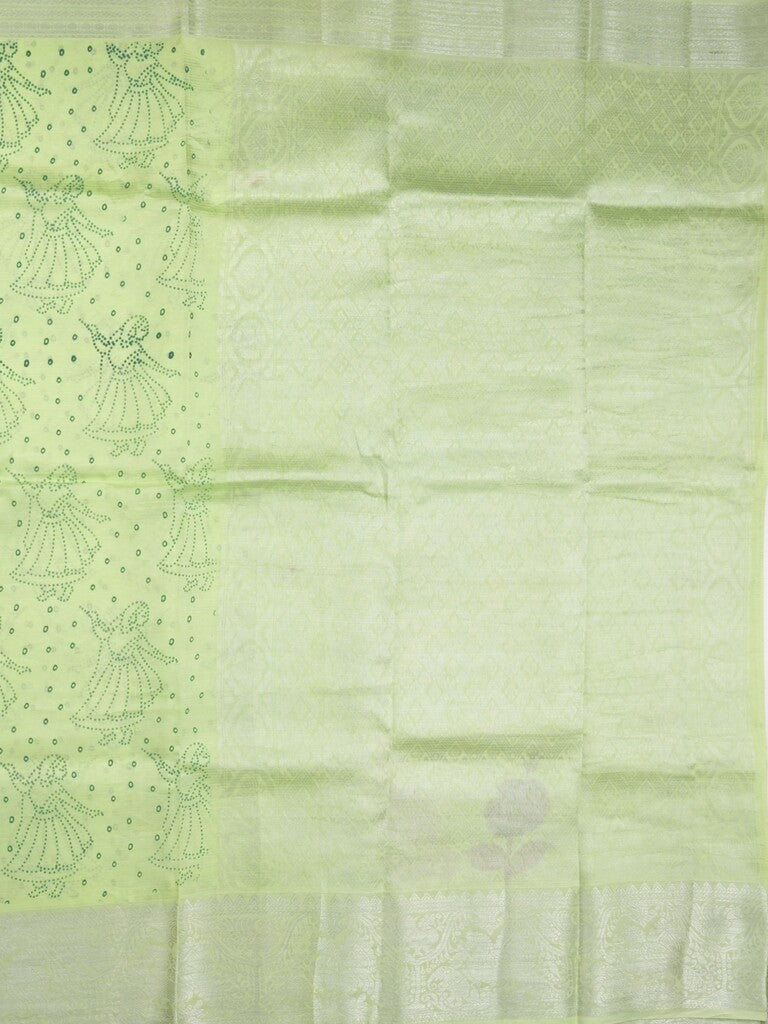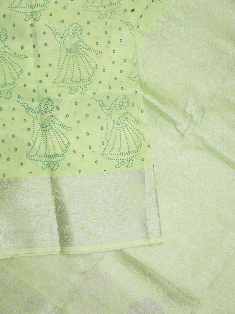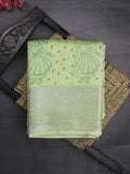 Mangalagiri fancy saree light green color allover prints & zari border with rich pallu and plain blouse