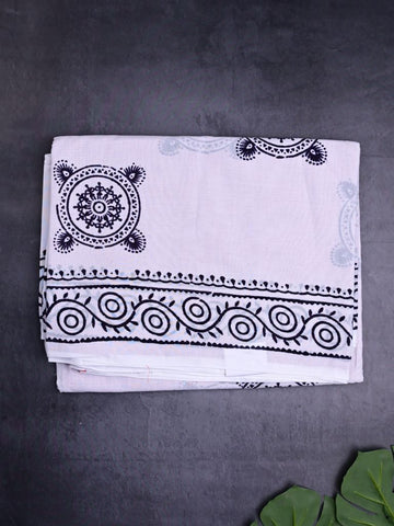 Mul mul cotton saree white color allover prints & printed border with printed pallu and contrast plain blouse