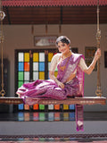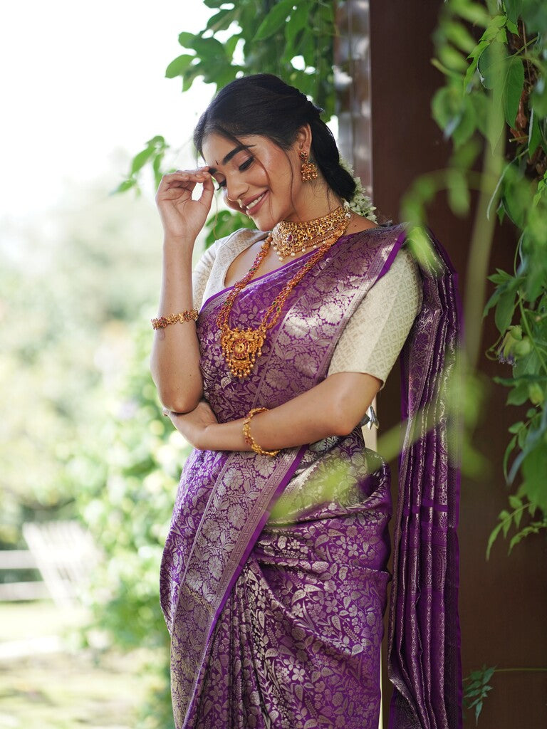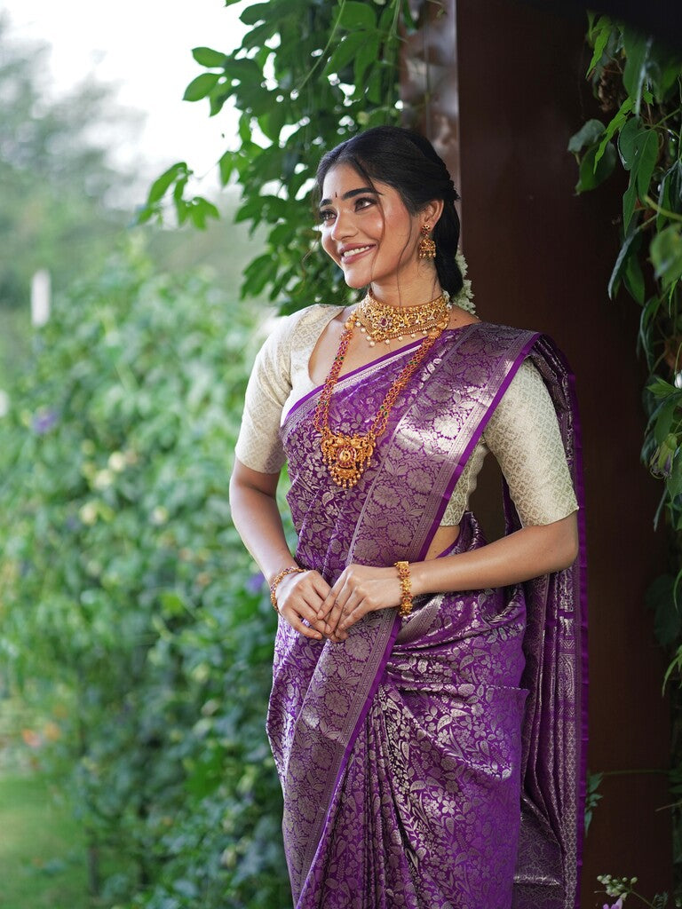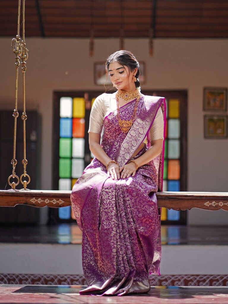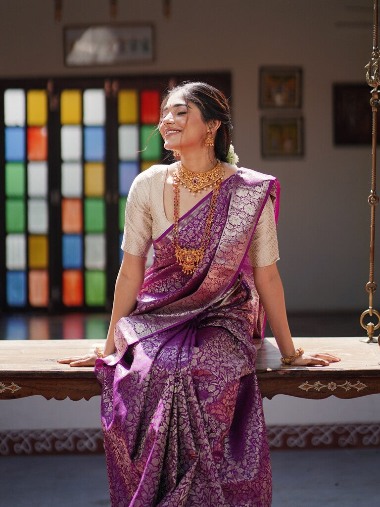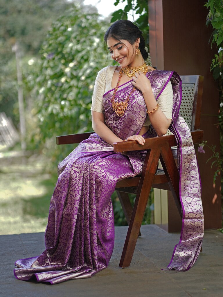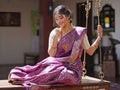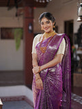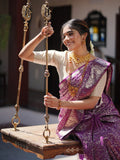 Kanchi pattu saree purple color allover zari weaves & zari border with rich pallu and attached blouse