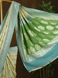 Pure georgette fancy saree pastel yellow color allover zari motifs & zari border with rich pallu and plain blouse