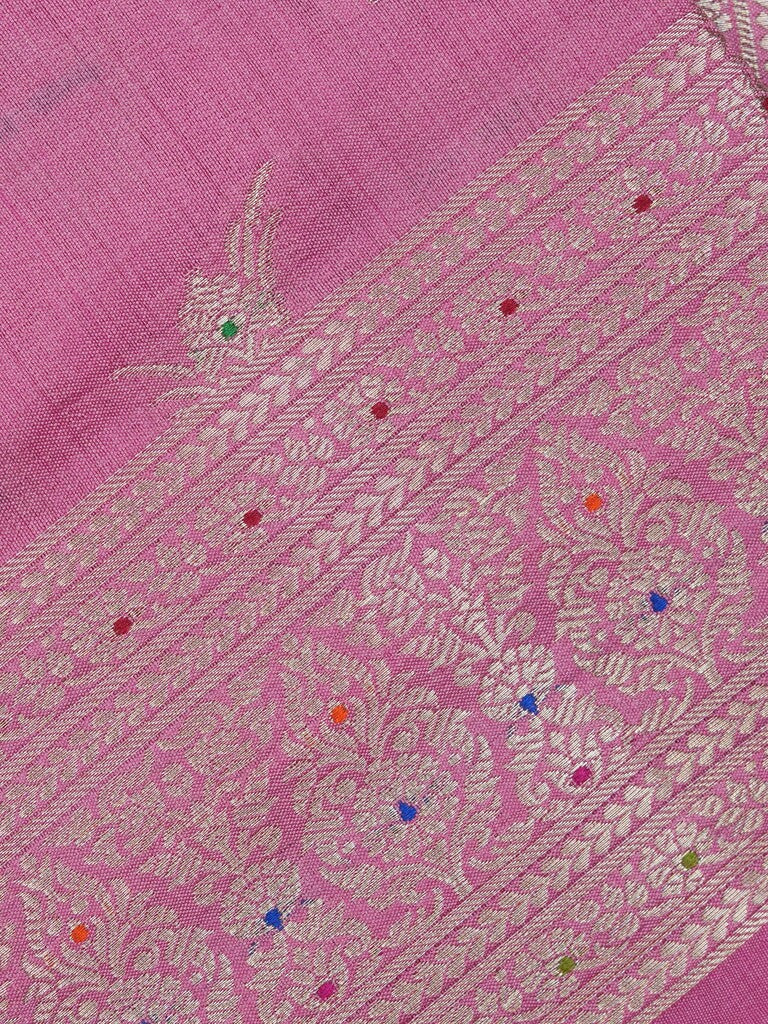 Raw mango pattu saree purple color allover zari motifs & zari border with zari pallu and brocade blouse