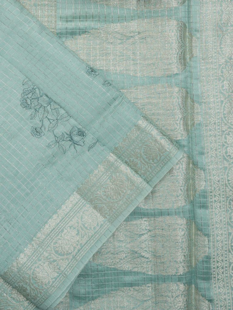 Raw mango pattu saree sky blue color allover zari weaves & zari border with zari pallu and self blouse
