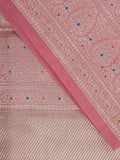 Raw mango pattu saree baby pink color allover zari motifs & zari border with zari pallu and brocade blouse