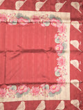 Tussar fancy saree red color allover plain & contrast printed border with running pallu and printed blouse