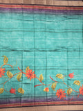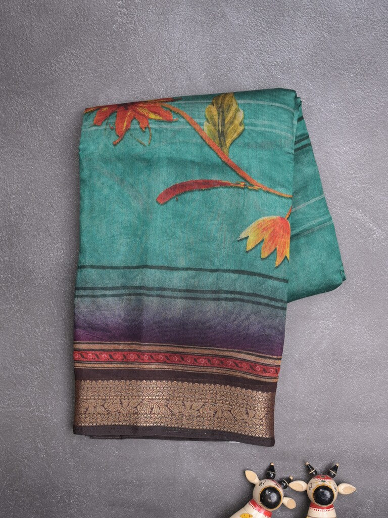 Tussar fancy saree lux green color allover prints & zari, printed border with contrast pallu and attached printed blouse