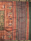 Tussar fancy saree olive green color allover prints & zari, printed border with contrast pallu and attached printed blouse