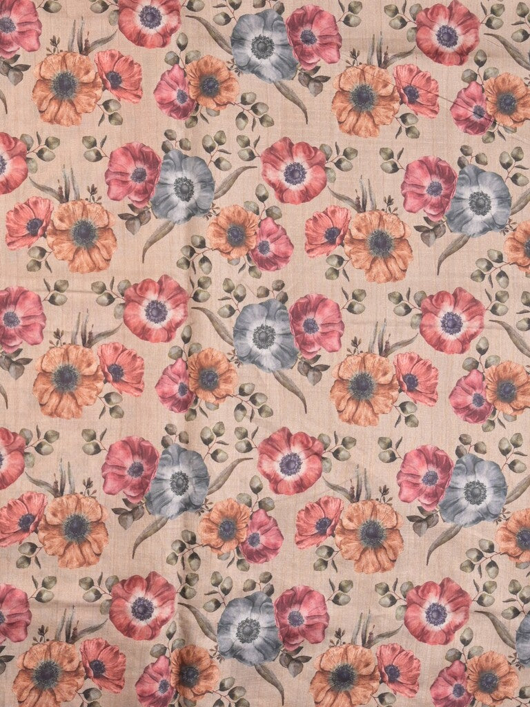 Tussar fancy saree grey color allover prints & printed border with printed pallu and contrast printed blouse